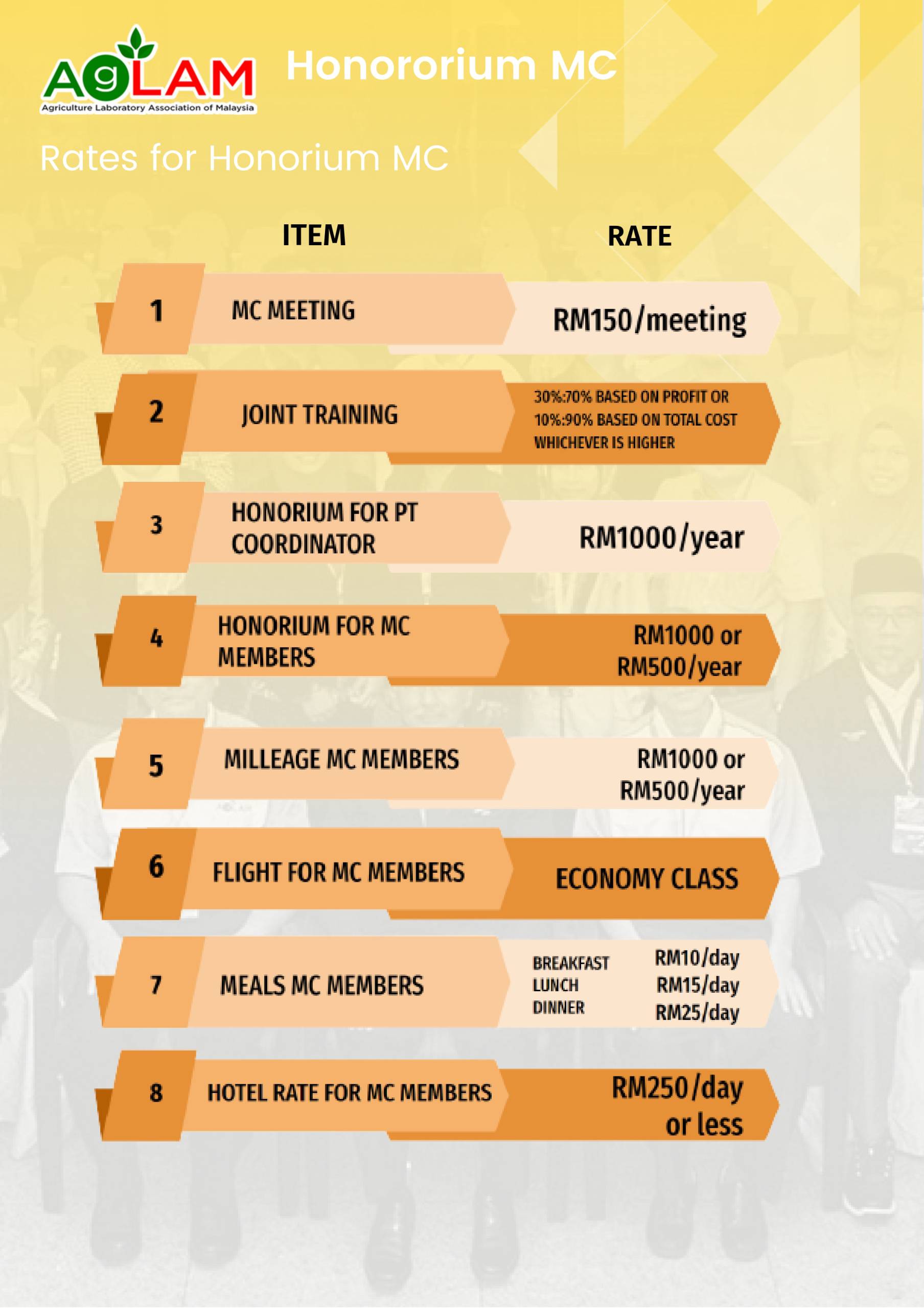 AgLAM conducts proficiency testing for 3 rounds per year with participants ranging from plantation companies, university, government, commercial company and commercial laboratories. 3 meetings are conducted every year at selected venues to discuss on the programme.